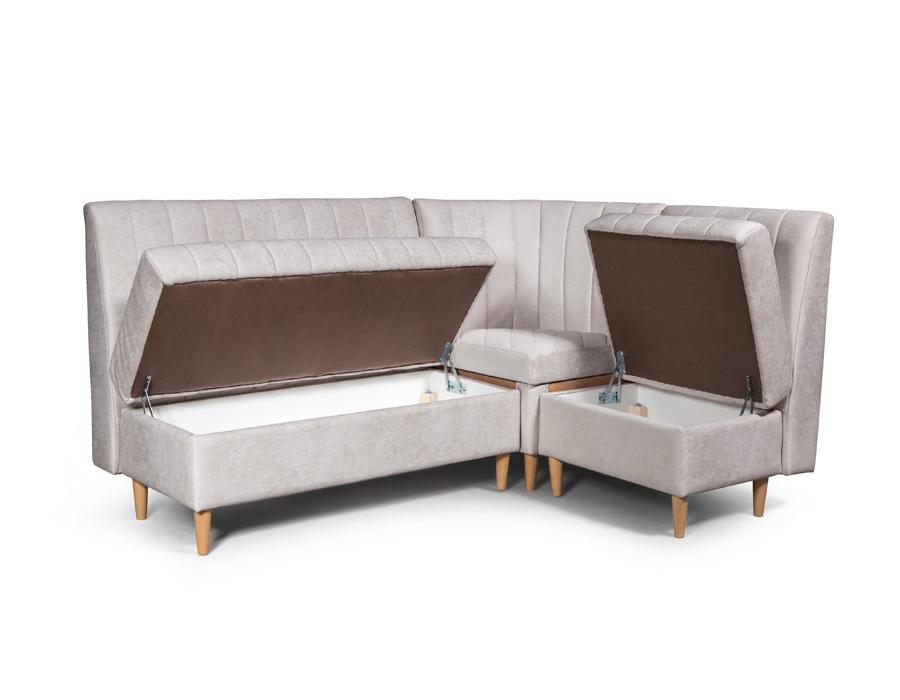 Кухонный уголок "Джаз" — это функциональное и стильное решение для вашей кухни или малогабаритной гостиной. Уголок выполнен из прочных и качественных материалов, обеспечивающих долгий срок службы и комфорт в использовании. Его компактные размеры идеально подходят для небольших пространств, а современный дизайн с аккуратными линиями гармонично впишется в любой интерьер. Особенностью модели "Джаз" со спальным местом является встроенная спальня зона, которая трансформируется из кухонного уголка при необходимости и служит удобным местом для ночлега. Мягкие подушки и удобная спальная поверхность обеспечивают комфортный отдых, а дополнительные элементы хранения внутри позволяют систематизировать кухонные принадлежности и постельное белье. Такой уголок — это отличный выбор для тех, кто ценит практичность, уют и стиль в одном изделии.