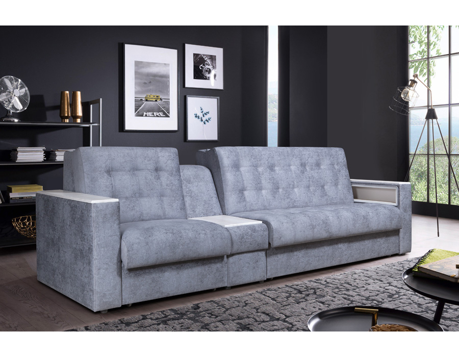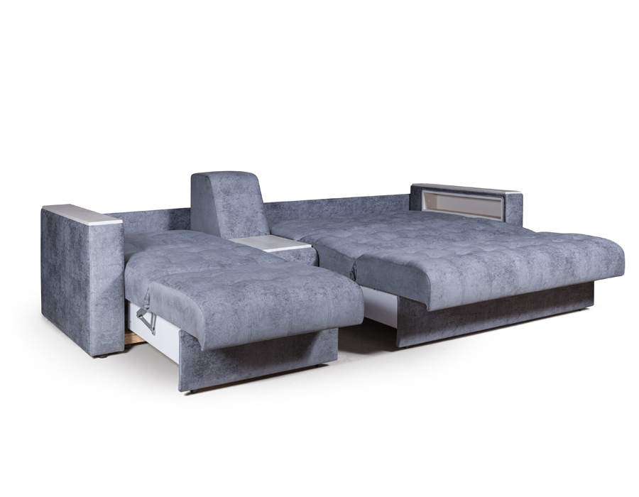 Диван Поло Дубль — это функциональный и стильный комплект, состоящий из разных спальнывх мест , идеально подходящий для гостиной или гостевой комнаты. Он отличается современным дизайном, удобными посадочными зонами и возможностью легко менять конфигурацию благодаря модульной системе. Каждый модуль выполнен из высококачественных материалов, обеспечивающих долговечность и комфорт. Диван Поло "Дубль" является модульным. Модель оборудована встроенным столиком с крутым баром, что делает её отличным решением для уютных вечеров или удобных прогулок с напитками. Модульная система позволяет легко переставлять и комбинировать элементы, создавая индивидуальную конфигурацию под любой интерьер. В качестве опции к дивану предлагается бельевой короб, который устанавливается под механизм трансформации. Механизм трансформации «Аккордеон» подходит для ежедневного использования. В разложенном виде диван образует комфортное спальное место.